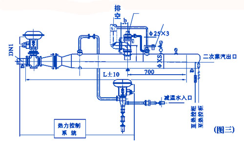 3、Ф25X3减温水管子,由用户根据具体安装位置自行配备及弯制。