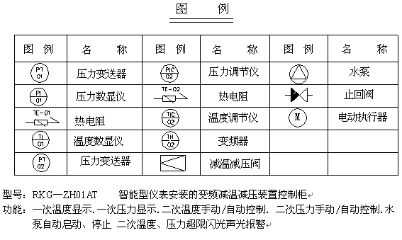 新一代全自动变频减温减压装置热控柜是我公司工控部为使用水泵的用户新开发的减温减压装置自控系统。它采用了变频控制水泵电机转速技术来自动调节减温水的给水量,不仅调节性能大大提高,而且节电、节水节约能源,并且还有效地保护水泵电机,使得水泵电机的连续使用寿命大大延长。同时由于变频器的丰富功能,使得水泵电机在使用过程中根据实际工况自动启动和关闭停止,真正做到全自动控制。